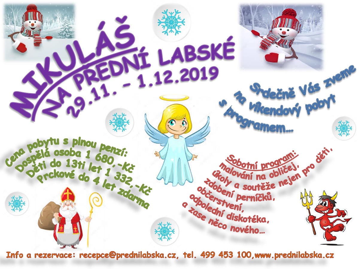 ani letos jsme nezapomněli na naše nejmenší, malé a větší ratolesti a chystáme MIKULÁŠSKÝ VÍKEND na Přední Labské.