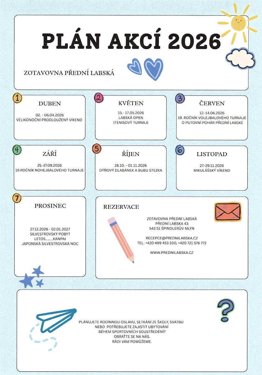 V příloze přikládáme Plán akcí pro rok 2026, abyste si mohli domluvit volno v práci, naplánovat víkendy,